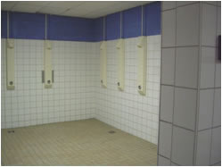 Elke kleedkamer is voorzien van een toilet en een doucheruimte met twaalf douches.
